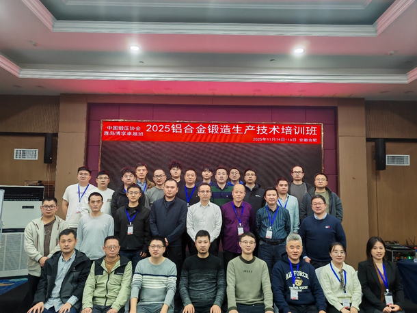 由中国锻压协会雅岛教育培训服务中心主办的"2025铝合金锻造生产技术培训班"于2025年11月16日在安徽合肥圆满落幕。本次培训吸引了来自二十余家企业的三十余名技术骨干和领导参与,通过系统化的课程设计为行业培养锻造专业人才。